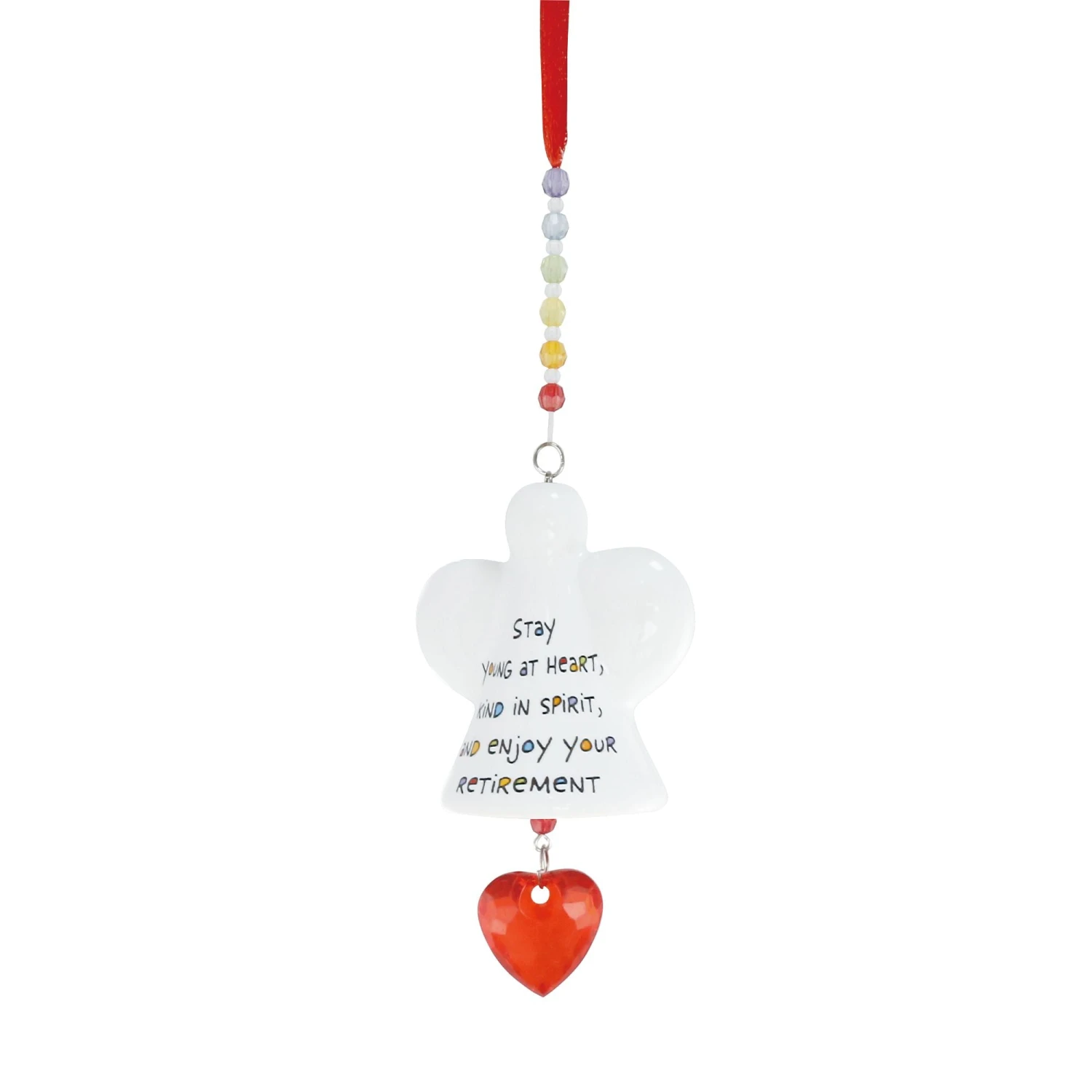 This colorful suncatcher from the Cuppa Doodles collection is a daily reminder of love. With bright beads, this little stoneware angel has been specially selected to watch over the retired. The sweet 3″ memento adds flair to windows with style.