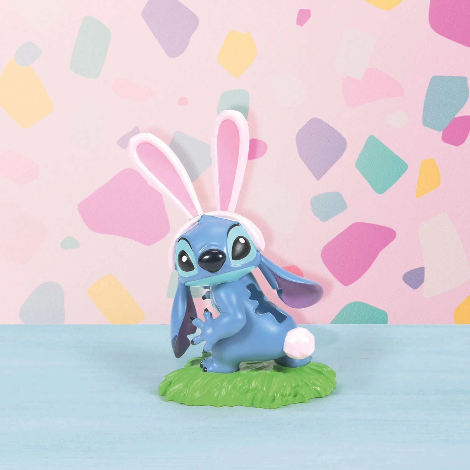 Celebrate the Holiday with everyone’s favorite space experiment Stitch. All decked out for Easter, Stitch dons a white cotton bunny tail and fluffy pink ears. Happy Birthday Easter Bunny!